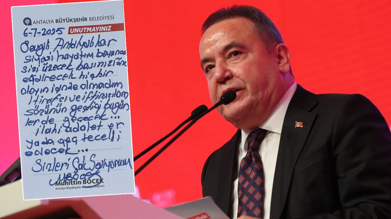 Antalya Cumhuriyet Başsavcılığı tarafından yürütülen rüşvet soruşturması kapsamında gözaltına alınan ve çıkarıldığı mahkemece tutuklanan Antalya Büyükşehir Belediye Başkanı Muhittin Böcek’in sosyal medya hesabından bir mesajı yayımlandı.