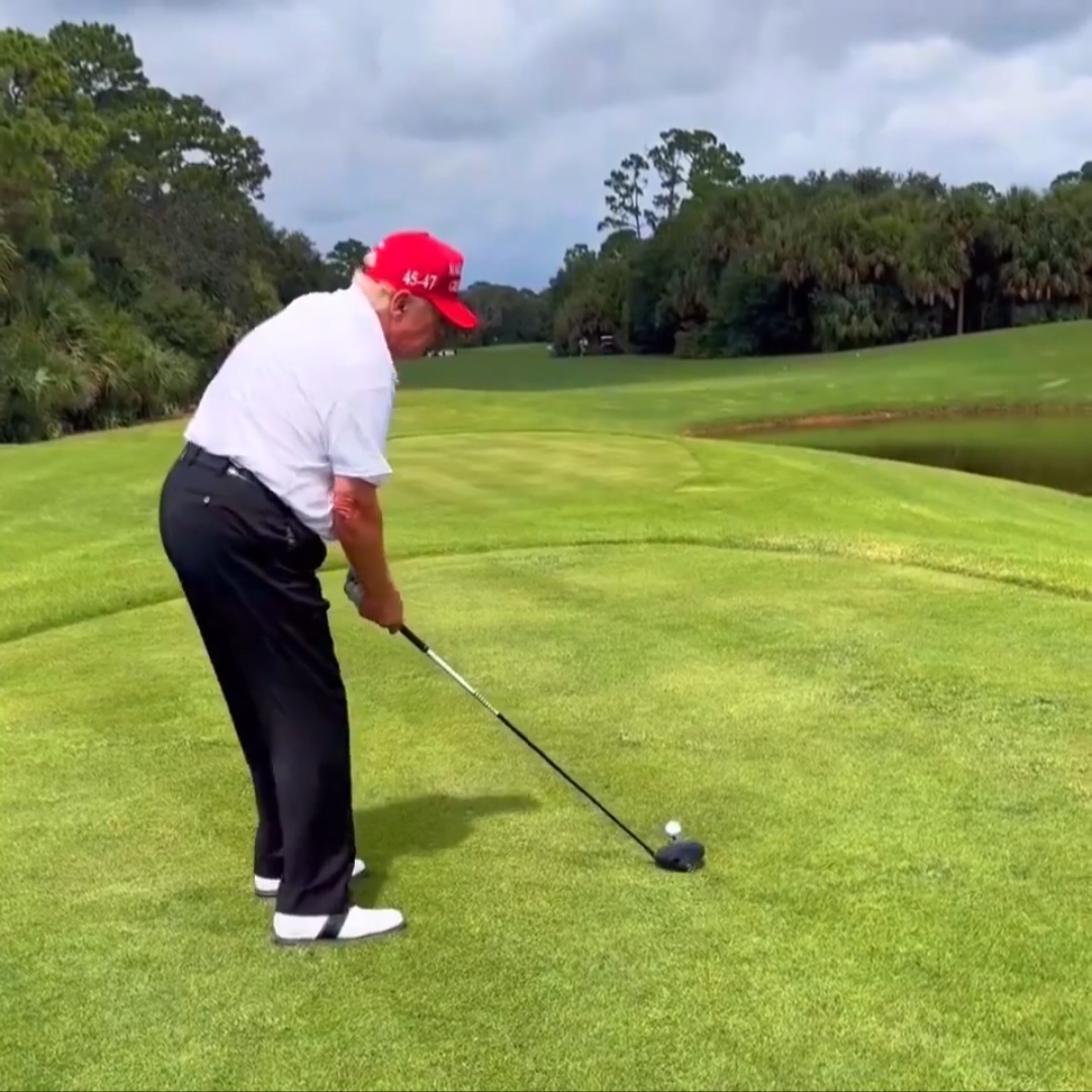 Bugün yine Virginia’daki kulübündeydi. Videoda Trump, torunu Kai ile golf oynuyor.