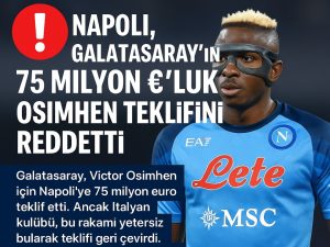 İtalyan kulübü Galatasaray’ın Oshimen teklif ettiği 75 milyon euroluk teklifi geri çevirdi. Alınan bilgilere Napoli’nin oyuncusunu Suudi takım Al Hilal satmak için baskı yapıyor.